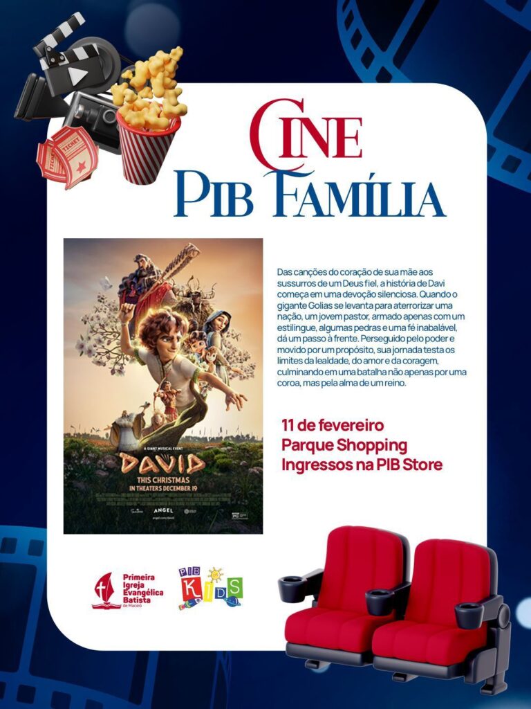 No dia *11 de fevereiro (quarta-feira)*, teremos o Cine PIB Família com o filme Davi, no *Parque Shopping*.